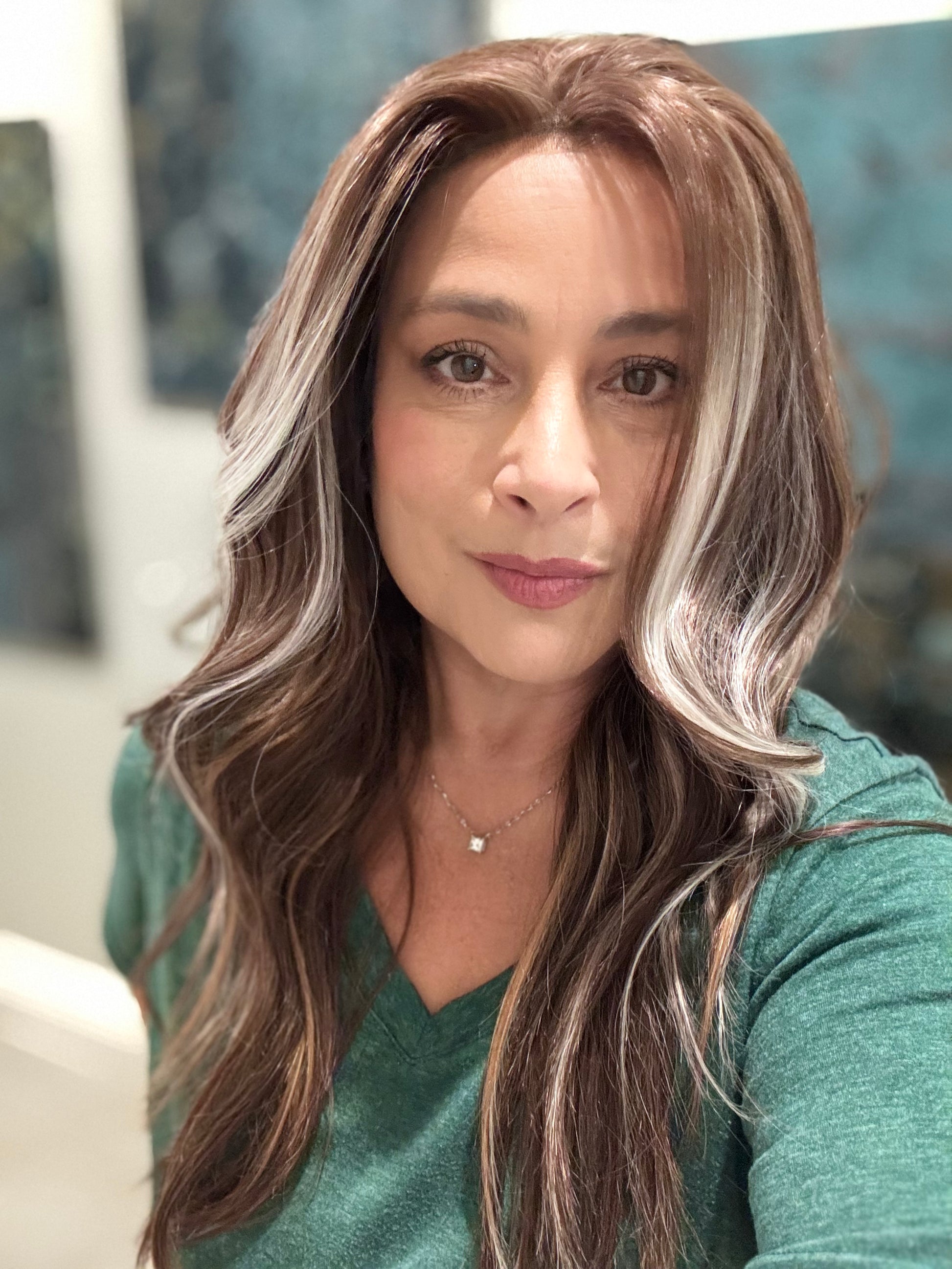 Brunette, Bronde with caramel and platinum blonde highlights