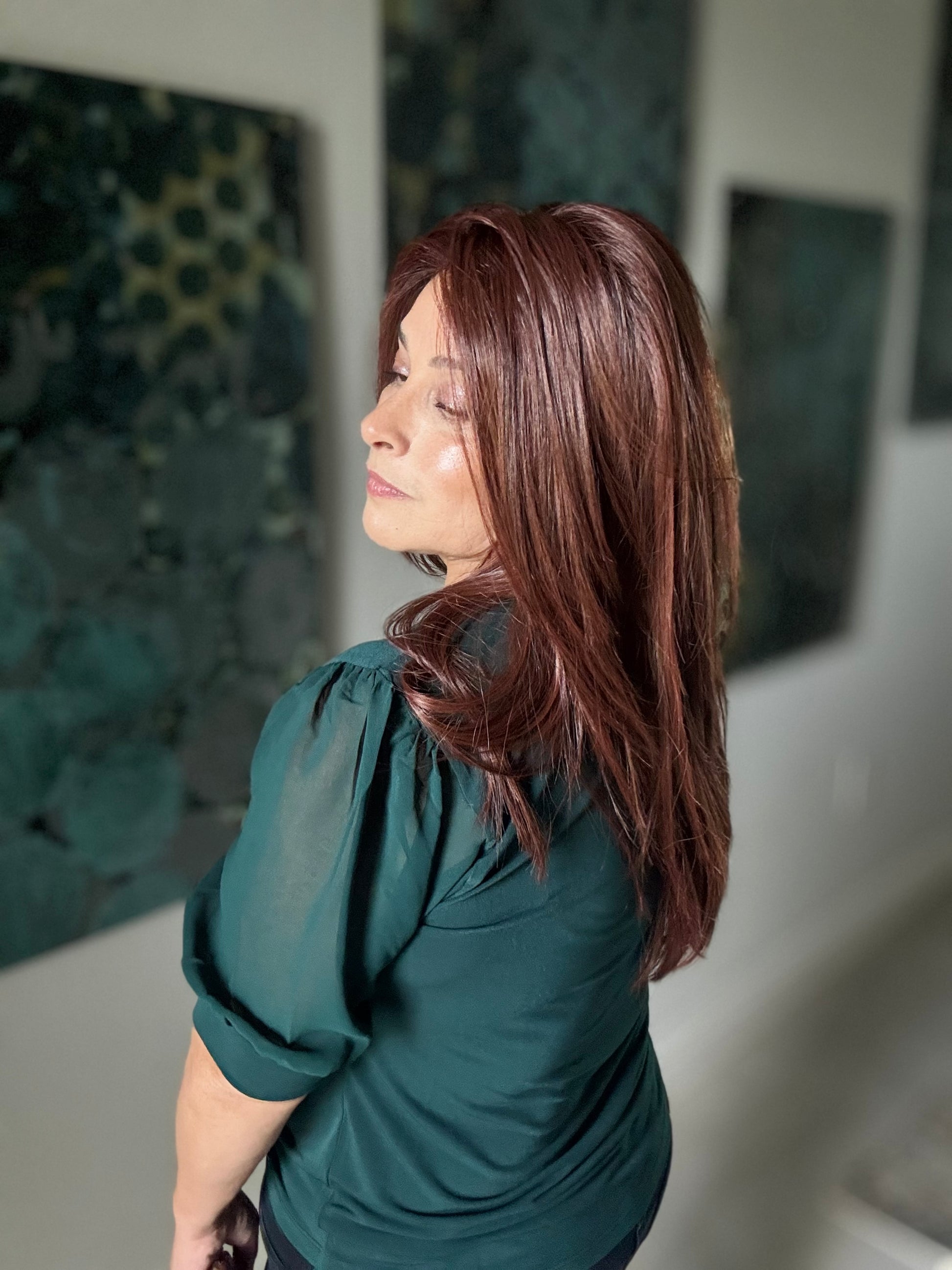 Glam by TressAllure is the ultimate long glamorous wig. This lightweight wig features airy layers cascading down to your mid back and frames your face, accentuating your features. This feathered style adds a soft and flattering touch. Crafted with low-density, Style-able Effortless™ heat-friendly synthetic fiber, Glam offers a natural part and an undetectable hairline. You can brush it off your face or create a stunning long ponytail. Perfect for those who desire silky soft long hair without the weight or bulk. Glam is versatile and can be styled with waves, curls, or straightened, ensuring you always look glamorous.